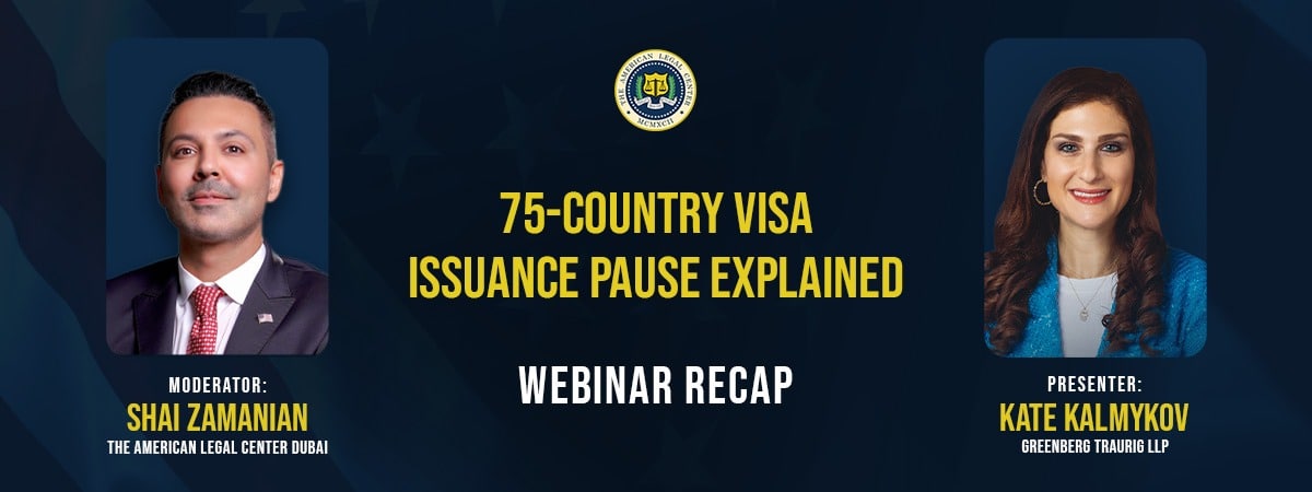 Following our recent webinar on the immigrant visa processing pause affecting 75 countries, here is a brief recap for everyone who may have missed the session. Hosted by EB-5 expert and U.S.-licensed lawyer, Shai Zamanian alongside U.S. immigration attorney Kate Kalmykov, the webinar focused on explaining what the pause means and how it may impact applicants.